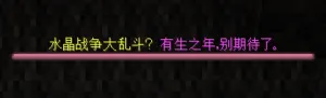 在水晶战争大厅的玩家可接收水晶战争广播,系统每约2.7秒从下表中随机选择并发送1条。该广播消息显示为Bossbar且受服务器显示语言设置项控制。