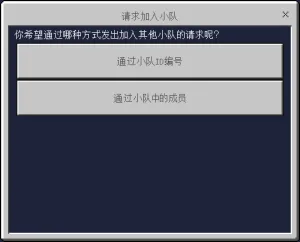 - “通过小队中的成员”,再在输入框中输入该队伍中的任一成员,再点击“提交”来申请。
