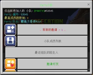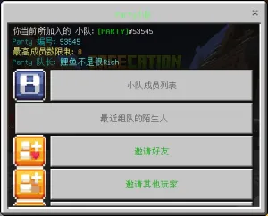 | 组队(Party)是服务器的一项功能。玩家可以使用该功能共同游玩小游戏。 | |