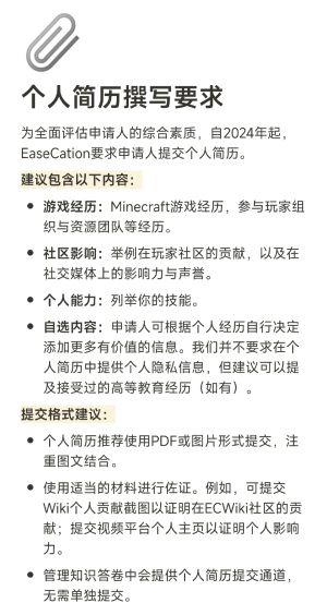 本次招新将综合考量个人简介(可选提交)、管理知识以及服务器通识三个方面。 建议玩家提前准备个人简历,包括个人游戏经历与申请管理员的动机,详细要求请查阅《个人简介撰写指南》。申请管理员要求年龄达到16周岁。