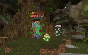 处于通缉状态的玩家有绿色的粒子效果,名称下有[WANTED]标记。
